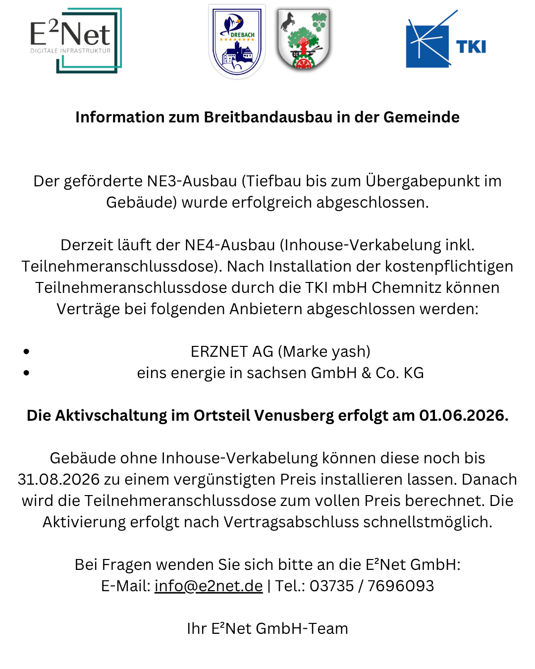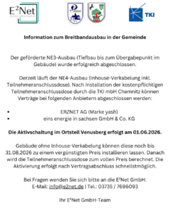 Aktuelles Ortsgeschehen Information zum Breitbandausbau pgrosslaub 31. März 2026 No Comments ← FSJ an der Grundschule Drebach Gemeinde Drebach jetzt auch auf Instagram und Facebook → Schreibe einen Kommentar Antwort abbrechenDeine E-Mail-Adresse wird nicht veröffentlicht. Erforderliche Felder sind mit * markiertKommentar * Name * E-Mail-Adresse * Website Meinen Namen, meine E-Mail-Adresse und meine Website in diesem Browser für die nächste Kommentierung speichern.